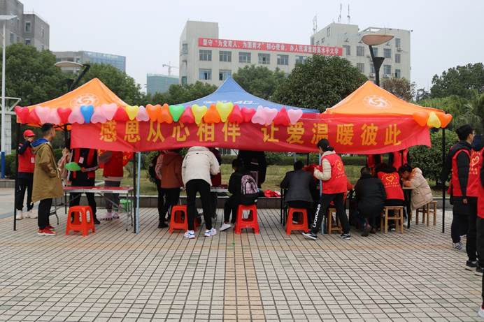 为迎合感恩节活动中感恩主题,以实际行动呼吁同学们常怀感恩,将爱大胆说出来,从而改善校园内同学关系、师生关系,促使校园内和谐温馨良好风气的形成,并由小及大,让日渐冰冷的社会增添一抹温暖。11月30日,sunbet申搏联合计算机学院、语言文学学院和机械工程学院青年志愿队到校园内开展主题为“感恩从心开始,让爱温暖彼此”的活动,并于南华广场设置线下摆点。