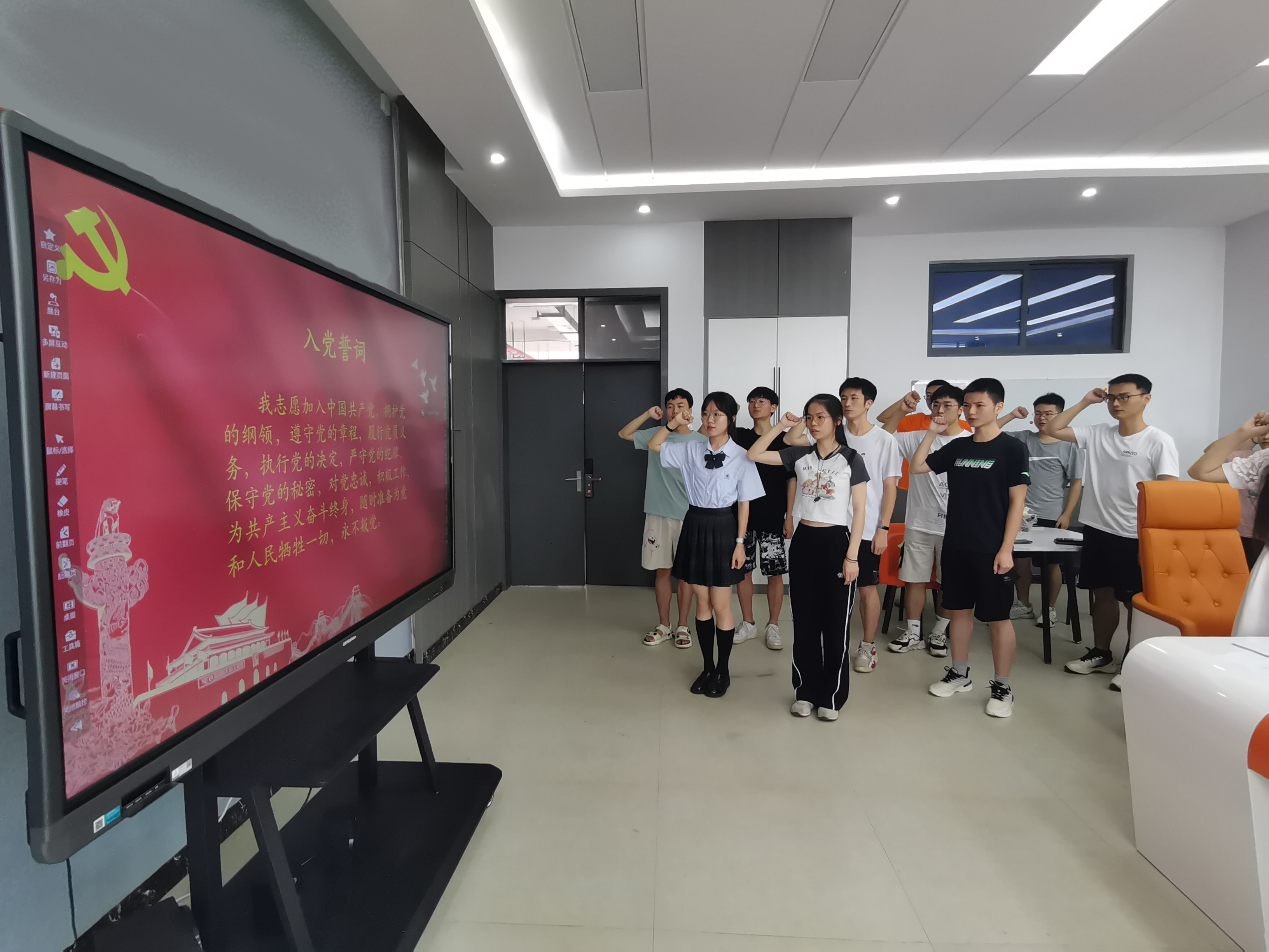 由党支部书记袁梦甜同志作总结发言,她首先欢迎周正等6名新同志加入支部,并对全体党员寄予了殷切期望。一是希望预备党员同志以正式党员的标准严格要求自己;在思想和行动上不断完善自己,争取早日成为一名合格的共产党员;二是希望全体党员同志能够坚定理想信念,改进工作作风,树立良好的党员形象;三是希望全体党员同志加强党性修养,做好表率作用;四是希望全体党员同志能够更加团结互助,提高支部的凝聚力,为支部建设贡献自己的青春力量;五是希望全体党员同志夯实自己的能力基础,增强学习的主观能动性,勇担时代责任,在新时代的征程上展现新的气象。会议末,全体党员宣誓入党誓词。