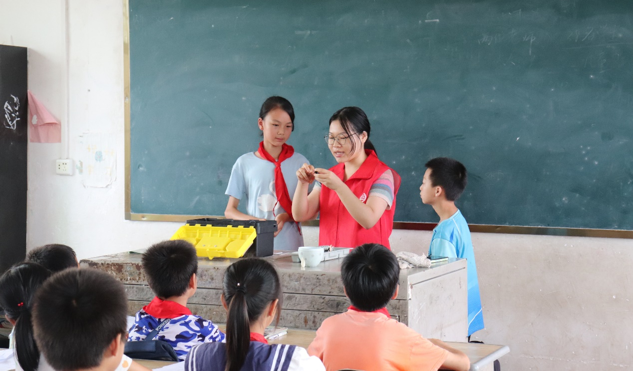6月27日,sunbet申搏,sunbet申搏官网“三下乡”实践服务团队来到耒阳市南京乡中心完小开展“点亮一盏灯”趣味科学教学活动,给孩子们普及了一些生活中常见的电气科学知识。