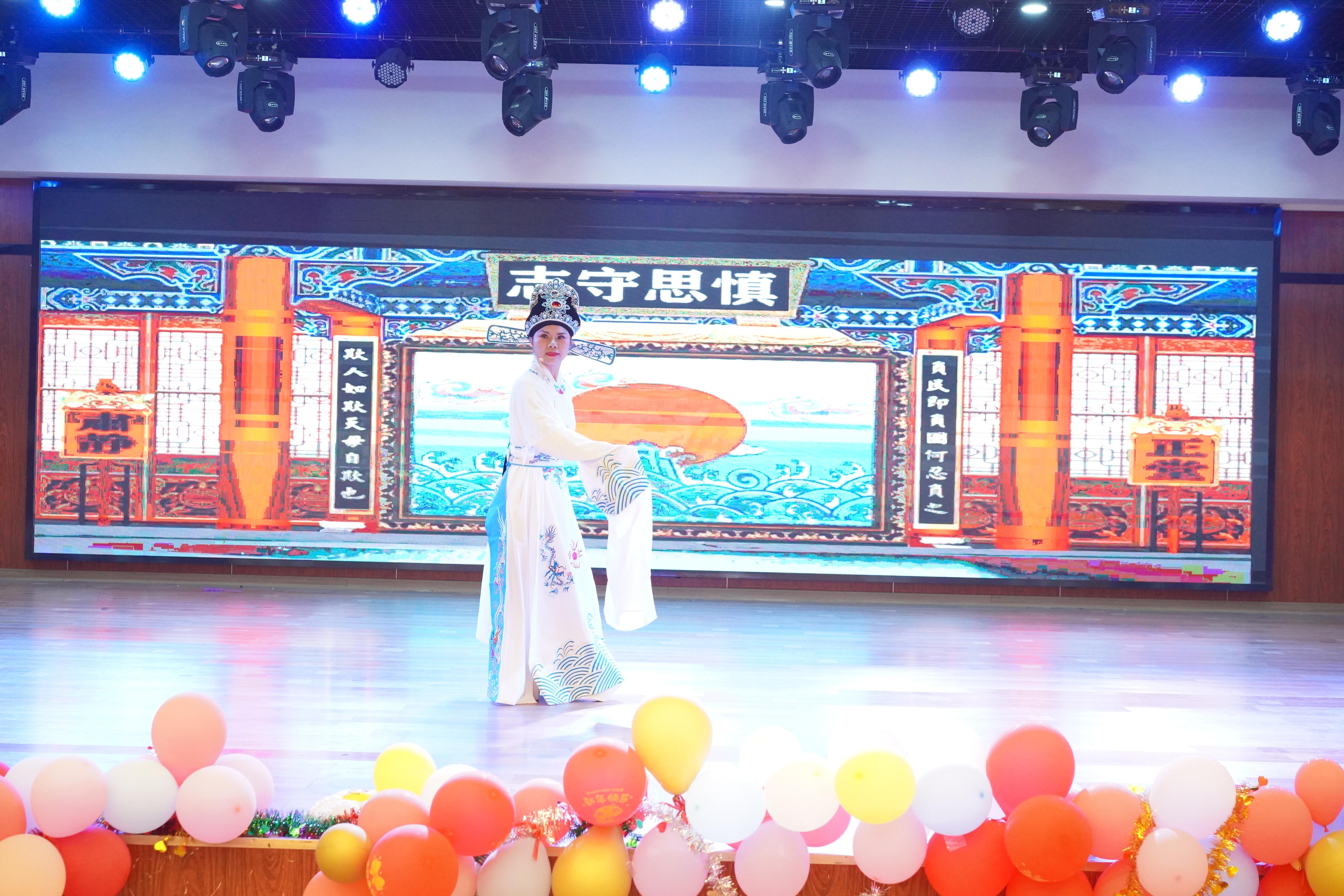 晚会在电工电子教学中心老师们表演的舞蹈《过年啦》拉开序幕,欢快的节奏、喜庆的服装和灵动的舞姿瞬间点燃了现场的气氛。由生物医学工程系老师们合唱的《新年钟声响起来》,歌声饱含对2025年的美好期盼和深深祝福。由院办、学工室、教务办老师们表演的《手扶拖拉机司机》,独特的创意和精彩的表演让现场欢声不断。由电子信息工程系欧阳宏志老师带来的亲子合唱《离别开出花儿》,歌声婉转,传递着浓浓的温暖与美好。由新入职教师代表赵洪泉老师和杨健老师带来的联唱《心的祈祷》、《曹操》,展现了新入职教师的多才多艺和青春活力。由通信工程系老师们表演的集体舞《可爱摆》,多彩的服饰搭配俏皮的舞姿让现场充满了欢声笑语。由电工电子教学中心刘原老师表演的越剧《胭脂。慎思》,优美的唱腔和精湛的表演让大家领略了传统越剧的独特魅力。由电气工程系曾铁军老师女儿曾馨晨表演的舞蹈《小当家》,童真的舞姿赢得掌声不断。由机器人工程系和自动化系王超老师和谢富强老师的孩子谢博安和王一诺表演的架子鼓《Butter-Fly》,激昂的鼓点和动感的节奏让现场观众热血沸腾。在欢送离退休教师和抽奖环节,现场更是气氛高涨,掌声不断。在晚会的尾声,由全体院领导和学工老师们联唱的《小美满》、《真心英雄》、《明天会更好》,深情的歌声传递着对全体教职工的美好祝福和对学院未来发展的坚定信心。