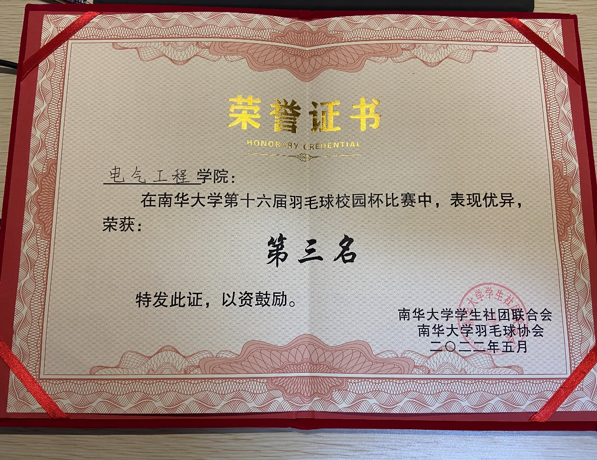 2022年5月15日,南华大学第十六届羽毛球校园杯圆满落下帷幕,sunbet申搏羽毛球队表现优异,斩获第三名的佳绩。
