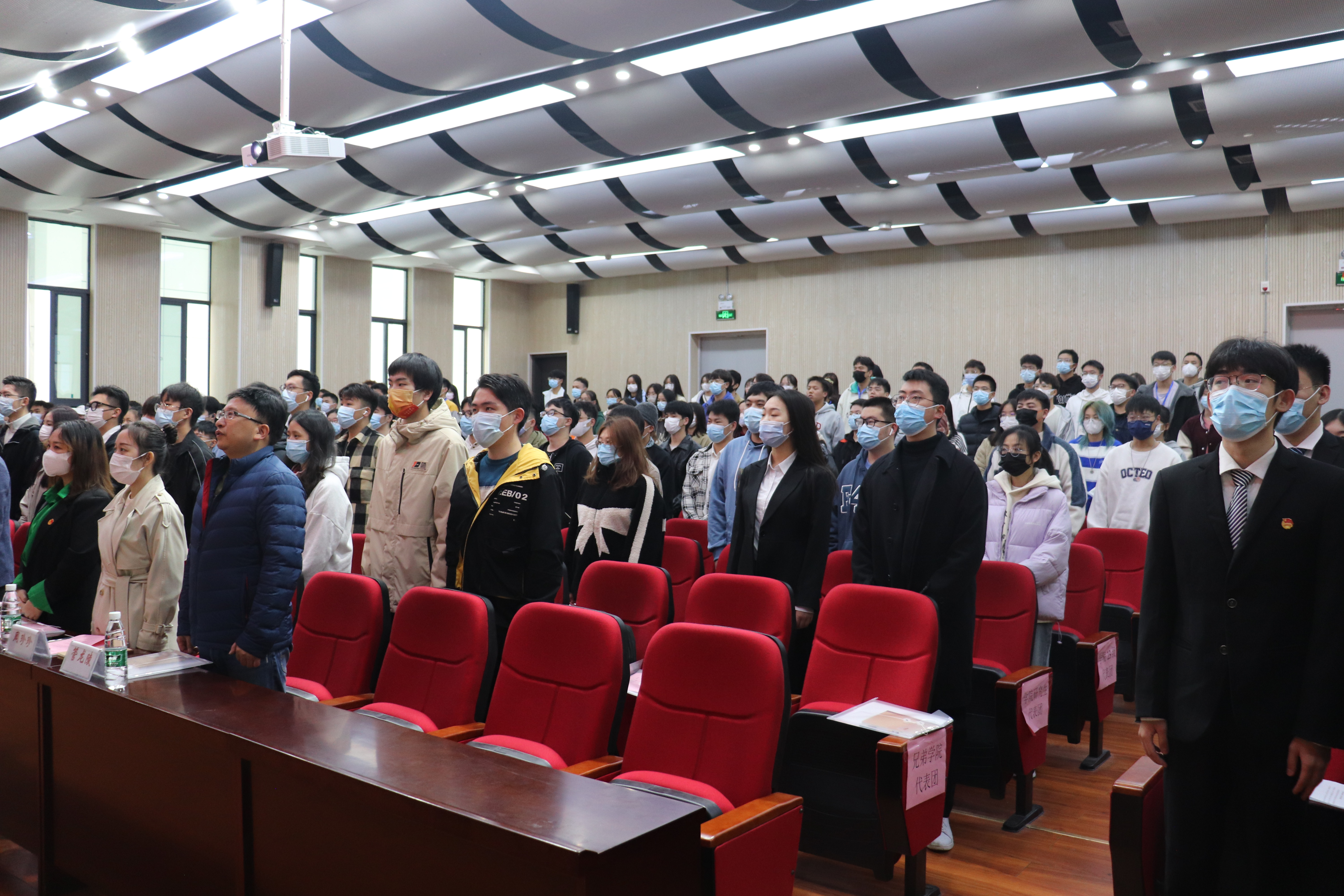 大会最后,单健院长宣读第二十三届团委学生会干部名单,领导、嘉宾为团学干部颁发聘书,第二十三届团学会执行主席臧德民宣读倡议书。