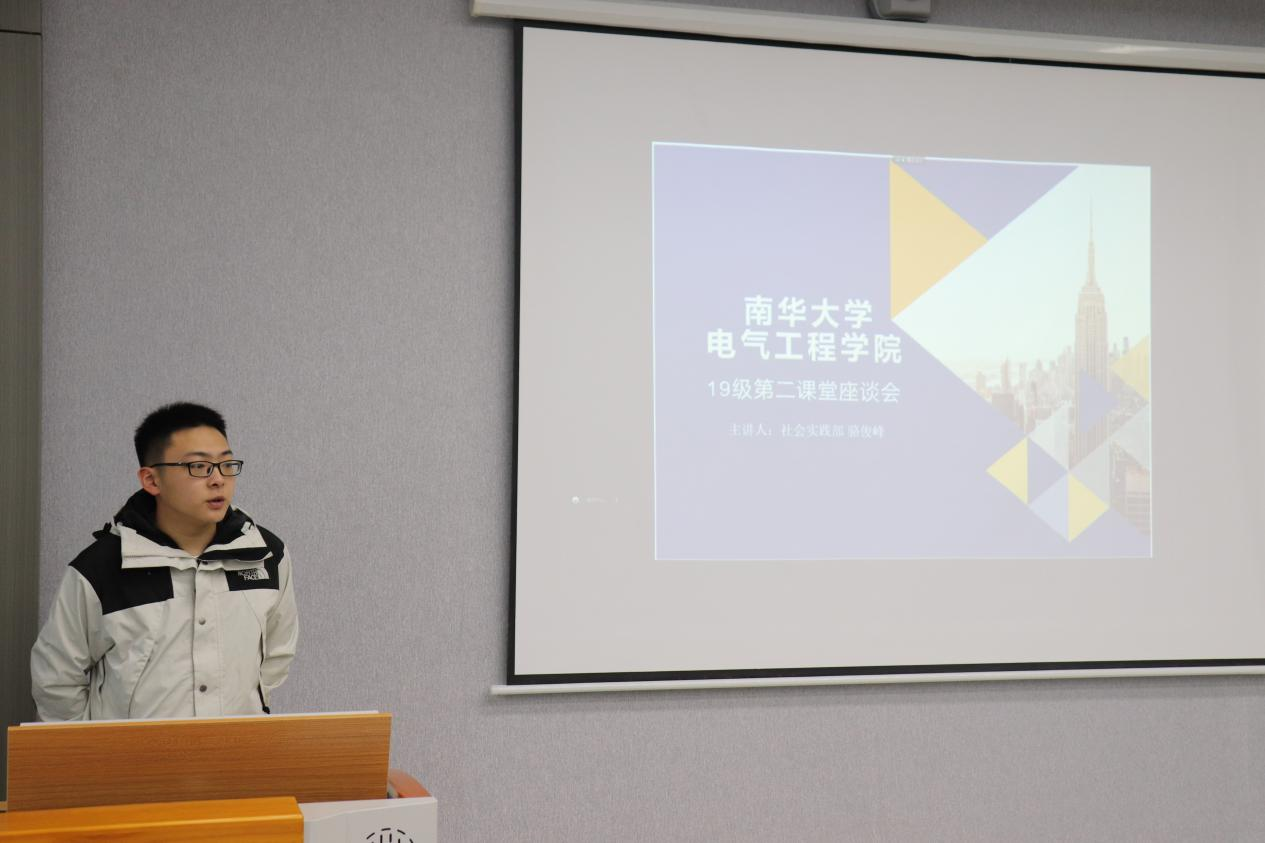 会议伊始,袁梦甜老师对我院19级“第二课堂成绩单”制度落实情况做了简单的汇报,王博老师随后针对部分学生活动参与度低等问题提出建议,并动员各班班干部积极帮扶后进同学、有效落实“第二课堂成绩单”制度。会议第二项,社会实践部部长骆俊峰就各个板块的修习提供了详细的学习方案。接着,会上邀请了优秀班级电力1906班的班干部何涛同学做经验分享,何涛同学从班级和个人两个方面细致介绍了第二课堂的学习策略。会议上,老师们与同学们就如何提高第二课堂学习效度展开了讨论。