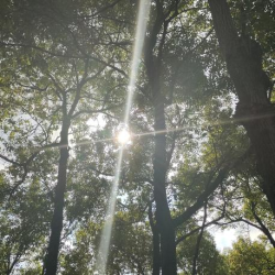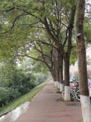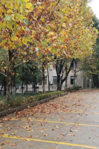 8点你在北校体育场有课,途经南华园。你因梧桐的美慌了神,金黄的落叶铺满了地面,踩上去沙沙作响,与微风合奏出一首美妙的乐曲。你想:“下课后一定要好好看看。”