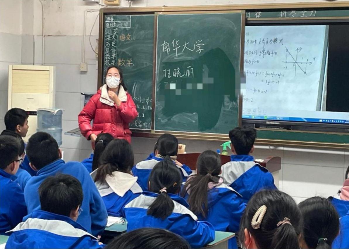 在收到高中班主任通知可以回学校的消息后,激动不已,第二天便和小伙伴一起回到了承载着3年美好回忆的资阳中学,走在走了三年的走廊和楼梯上时,心中感慨万千,特别是在回到以前坐了三年的教室和教室外走廊上学弟学妹们的一些作品时。回母校后受班主任的邀请上台给学弟学妹们讲几句,所以我就抓住机会,宣传了一下咱们南华大学。课后从班主任拍的照片和录的视频中,隔着屏幕都感觉到了学弟学妹们的兴奋和激动。期待学弟学妹们到南华大学来读书哦!