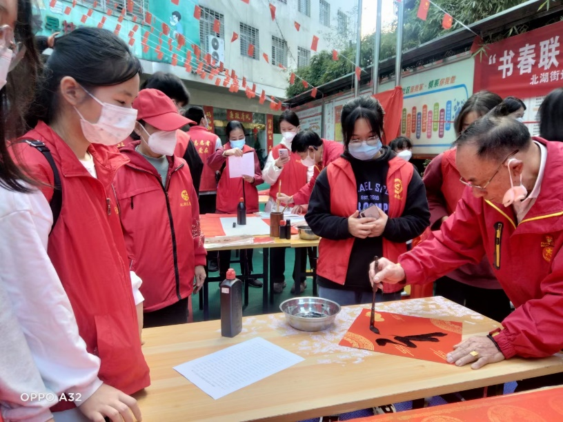 临近春节,为让老百姓和农民工感受到温暖,社区还开展了关爱农民工送春联送温暖活动。活动中,我亲身体会了写春联、写“福”字的乐趣,并协助了现场相关人员将春联进行发放,体会着社会、人与人之间的温暖。通过这些活动,让我感受到了自我价值,体会到了奉献的乐趣与意义。
