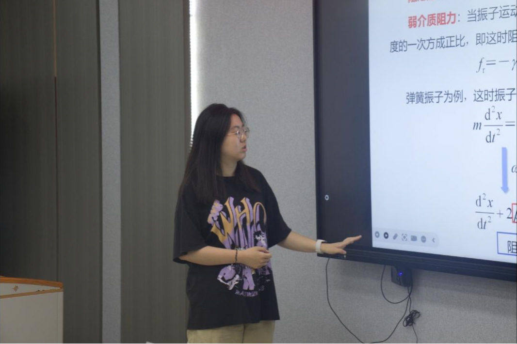 主讲人张梦瑶围绕"构建物理思维框架"这一主题展开深入讲解。在机械波章节,她通过生动的弹簧振子动态模型演示,系统梳理了机械波的产生条件、波动方程推导及相位传播规律等核心知识点。针对热力学专题,创新性地采用"流程图+能量饼图"双轨分析法,帮助同学们深入理解绝热过程特征方程和卡诺循环效率计算等难点内容。在光学模块的讲解中,张梦瑶结合实验视频和模拟软件,将抽象的光程差计算及薄膜干涉原理以直观的方式呈现,大大提升了同学们的理解效果。