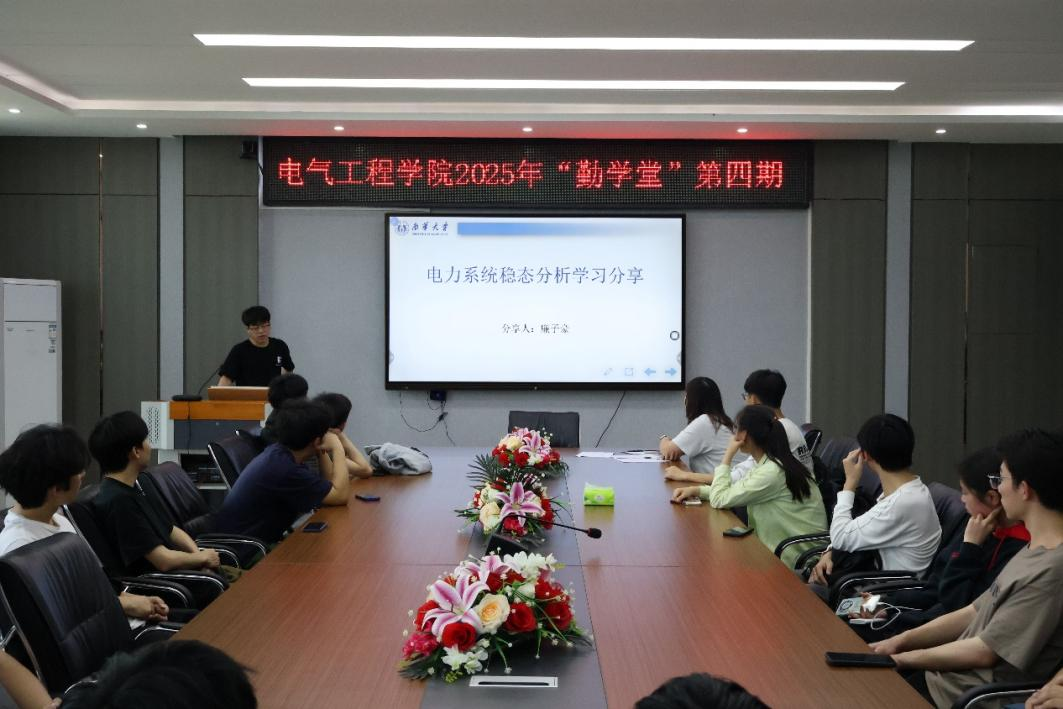 4月28日,sunbet申搏,sunbet申搏官网在崇业楼B301会议室成功举办2025年第四期“勤学堂”学业帮扶活动。本次活动特邀2022级国家奖学金获得者廉子豪同学担任主讲,围绕“电力系统稳态分析”专题展开深入讲解,吸引了30余名学生积极参与,现场学习氛围浓厚。
