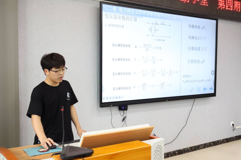 在为期两个小时的课程中,廉子豪同学系统性地讲解了电力系统稳态分析的核心内容。课程首先从电力系统基本概念入手,详细解读了额定电压和额定频率等关键参数;随后深入剖析了变压器等值电路和参数标志等重点知识;在双绕组与三绕组变压器参数计算环节,通过公式推导和实例演示,生动阐释了电阻、电抗、电导和电纳等参数的计算方法及其物理意义。