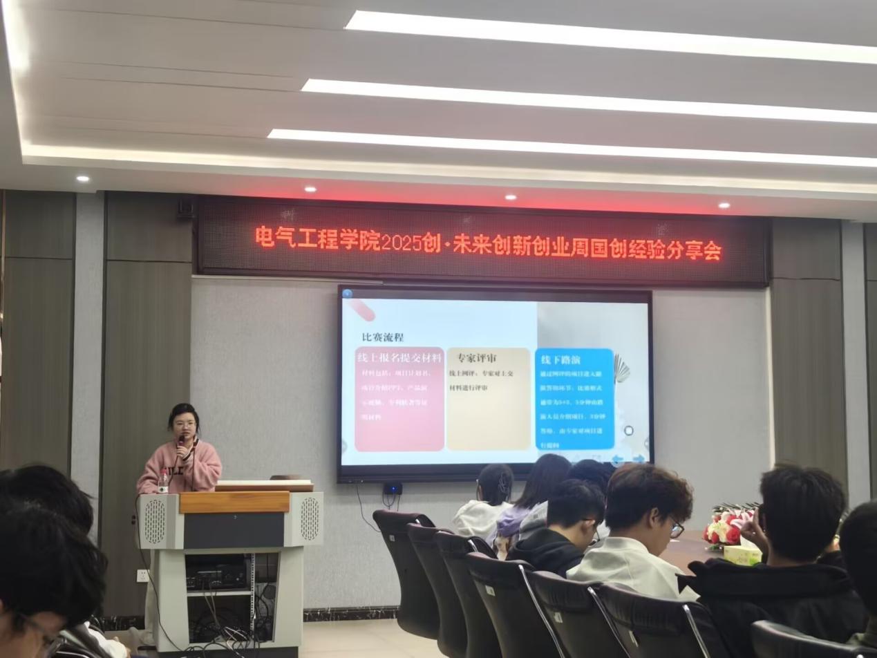 为深化国家级创新创业项目协同合作,激活青年创新创造潜能,推动科技成果加速转化,sunbet申搏于10月30日下午三点在电气楼B301进行了“创•未来”国创经验分享会,本次会议由国创大赛获奖者陆晨毅,李静同学分享经验。