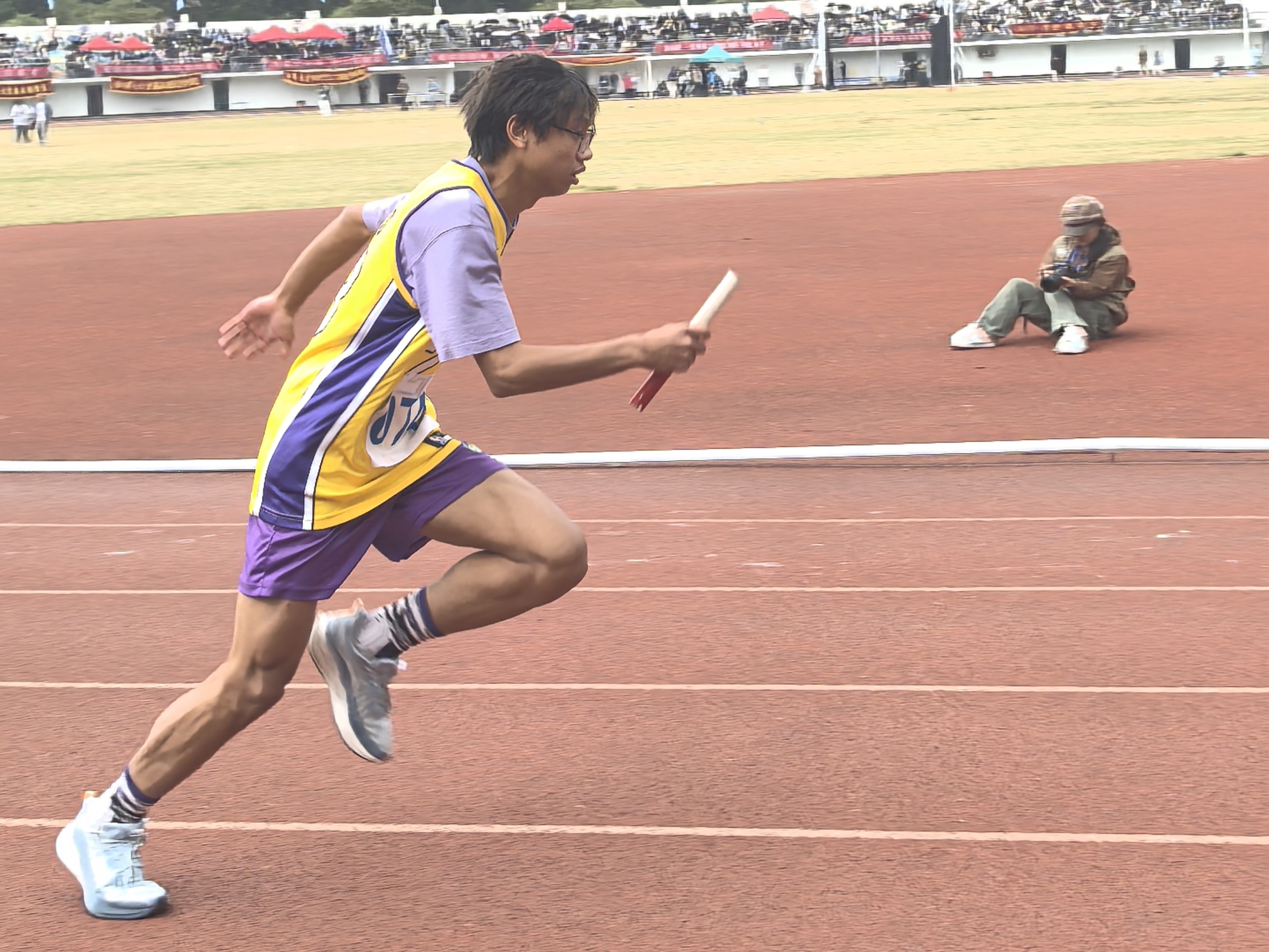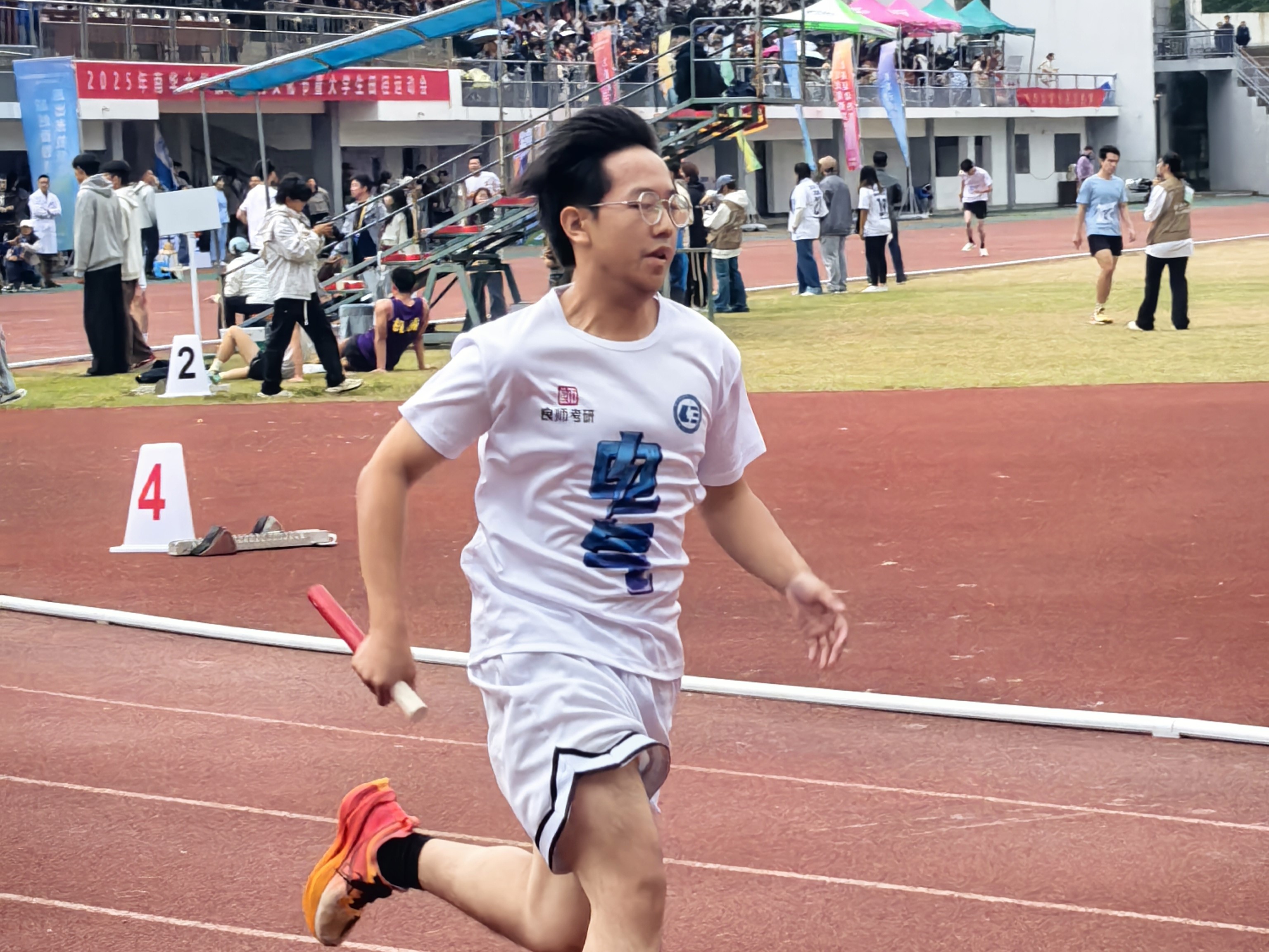 径赛决赛场上,备受关注的男子组4×400米接力预决赛中,sunbet申搏代表队团结协作,顺利完成比赛。