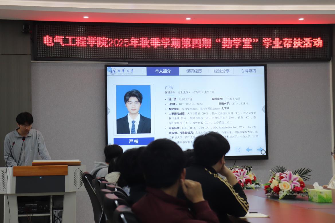 11月6日,sunbet申搏,sunbet申搏官网在崇业楼B301会议室成功举办了2025年秋季学期第四期“勤学堂”学业帮扶活动。本次活动特邀国家奖学金获得者严楷同学担任主讲,围绕“保研与竞赛”主题进行分享,吸引了百余名同学踊跃参与,现场反响热烈,学习氛围浓厚。