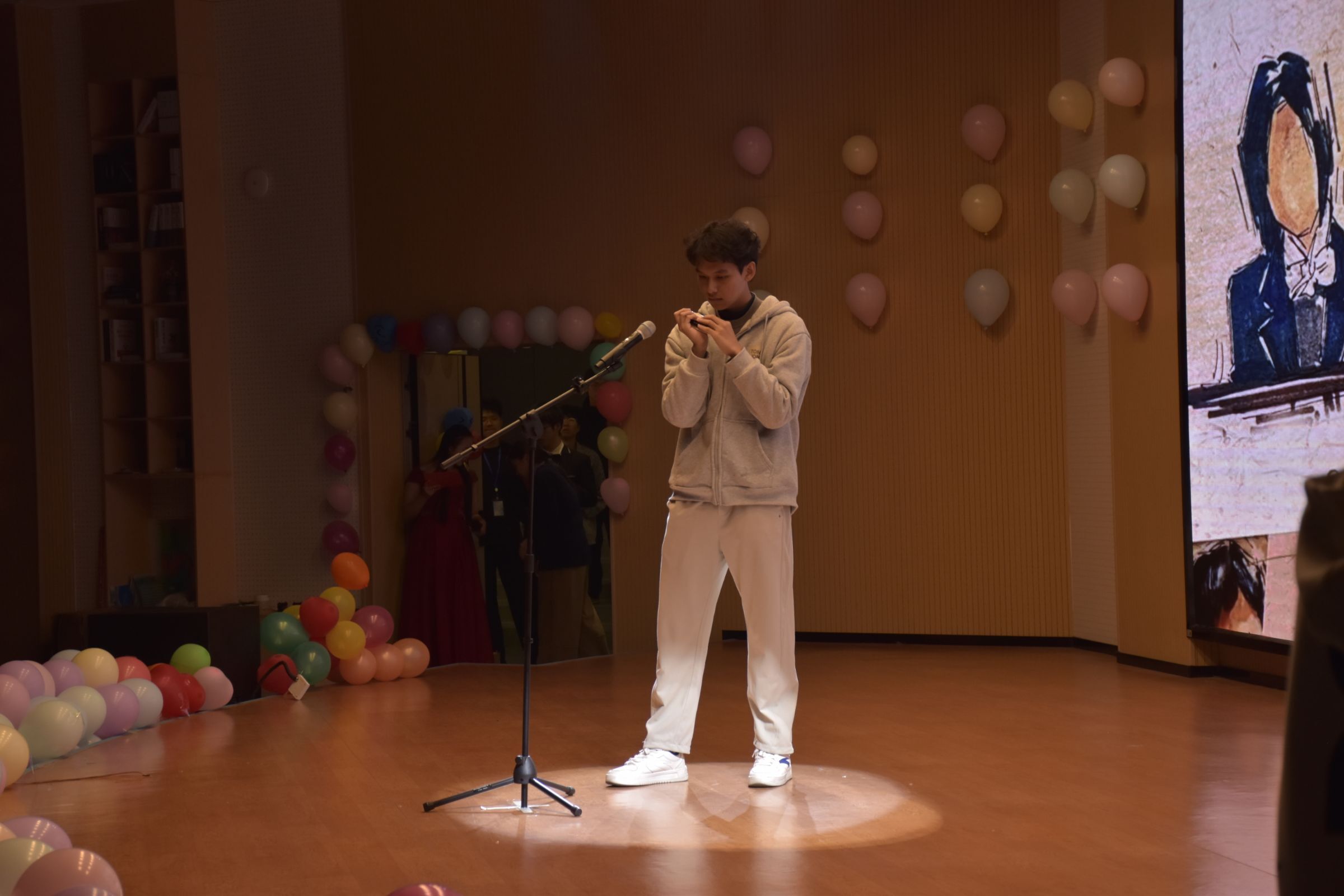独唱《想你的夜》凭借深情嗓音瞬间凝聚全场目光。钢琴与口琴合奏的《路小雨》勾勒出宁静悠远的音乐画卷。《其实》以及《演员》的演唱充满张力,以直白的歌词对话,诉说着故事背后的深情。礼仪队的走秀步伐从容、仪态优雅,展现出青春的自信风采。吉他独奏《like a start》演绎指尖流转的浪漫。《天天》则以其轻快的旋律,带动全场情绪,带来如沐春风般的温暖与惬意。