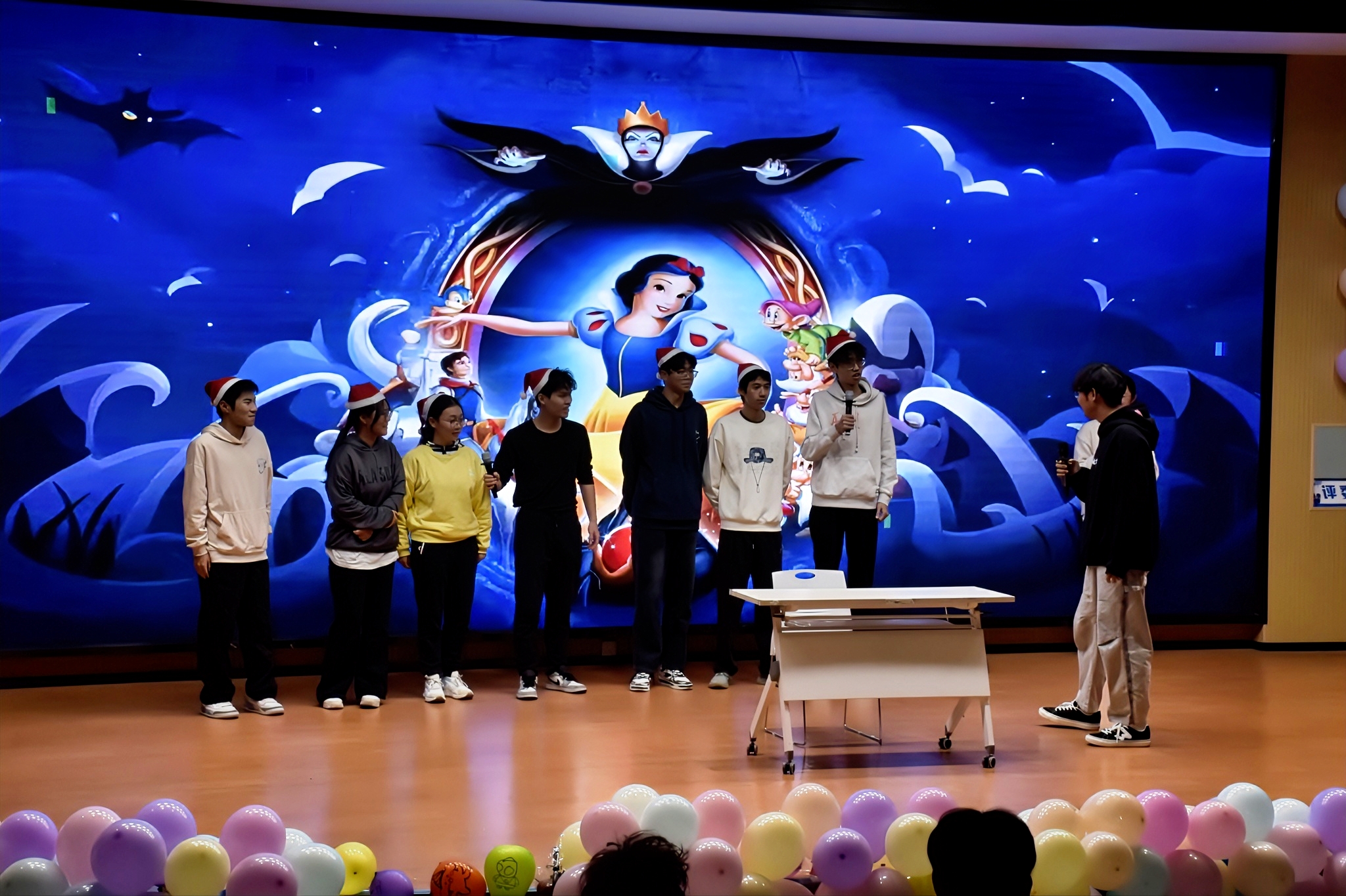 舞蹈队则以活力四射的《Pick Me》点燃全场,在跃动的节奏与迸发的力量之间,尽显青春的多重魅力。双人合唱的《手写的从前》展现了表演者之间默契的配合与情感共鸣。《爱》与《男孩》通过重复、强调的歌词,传达出内心最真挚的情感。话剧《白雪公主和七个大高个》以幽默改编和生动演绎,引来阵阵掌声与欢笑。合唱队演绎的《告别时刻》以和谐悠扬的多声部,唱出了离别的不舍与未来的期盼。