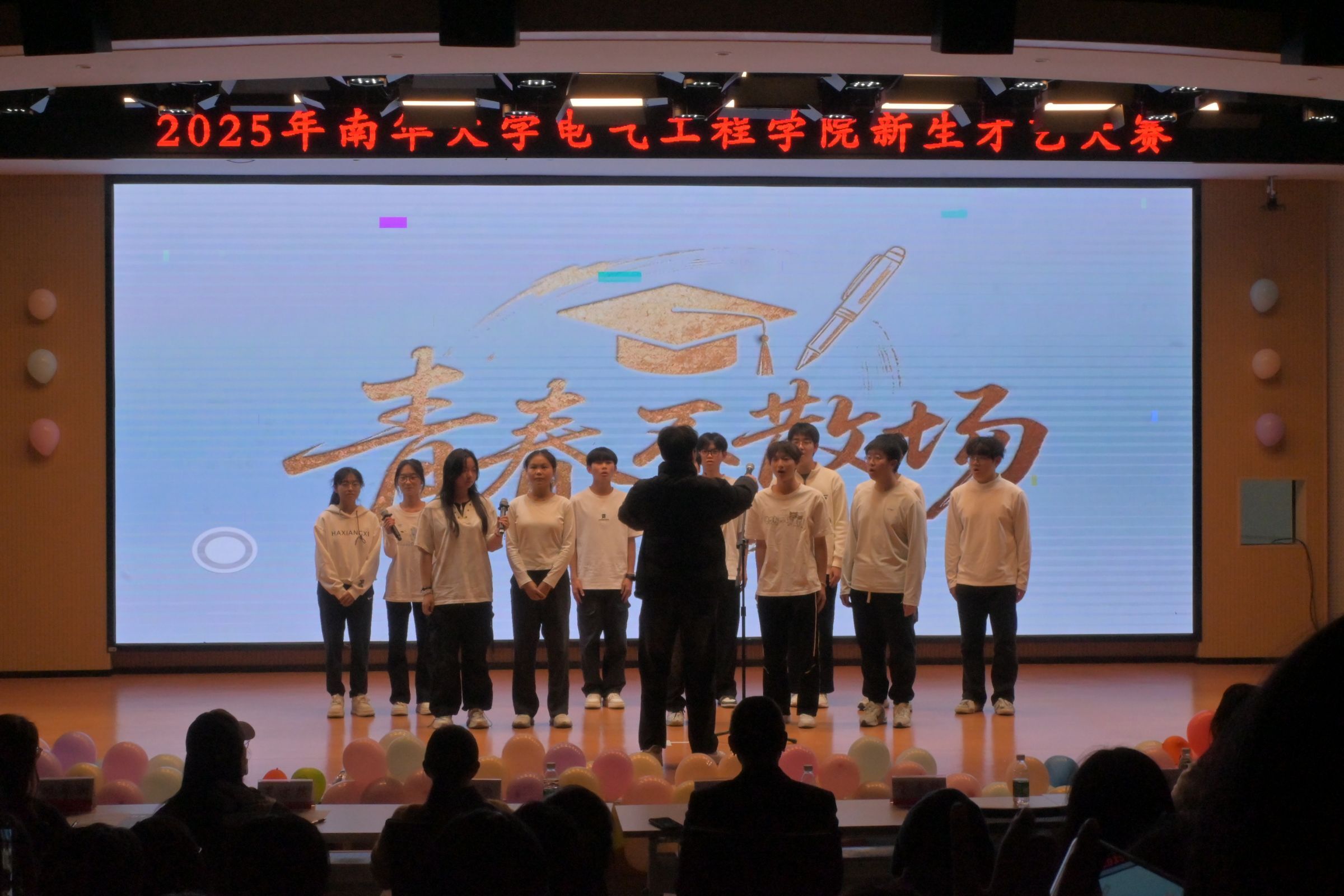经过评委团公正评审 ,大赛的奖项尘埃落定,老师们为获奖选手颁奖。最后,全体演职人员合影留念,共同定格了这属于南华电气的闪耀夜晚。感谢所有参赛选手和幕后工作人员的辛勤付出。舞台虽落幕,青春不散场。愿我们下次再见时,依然如星辰般明亮。