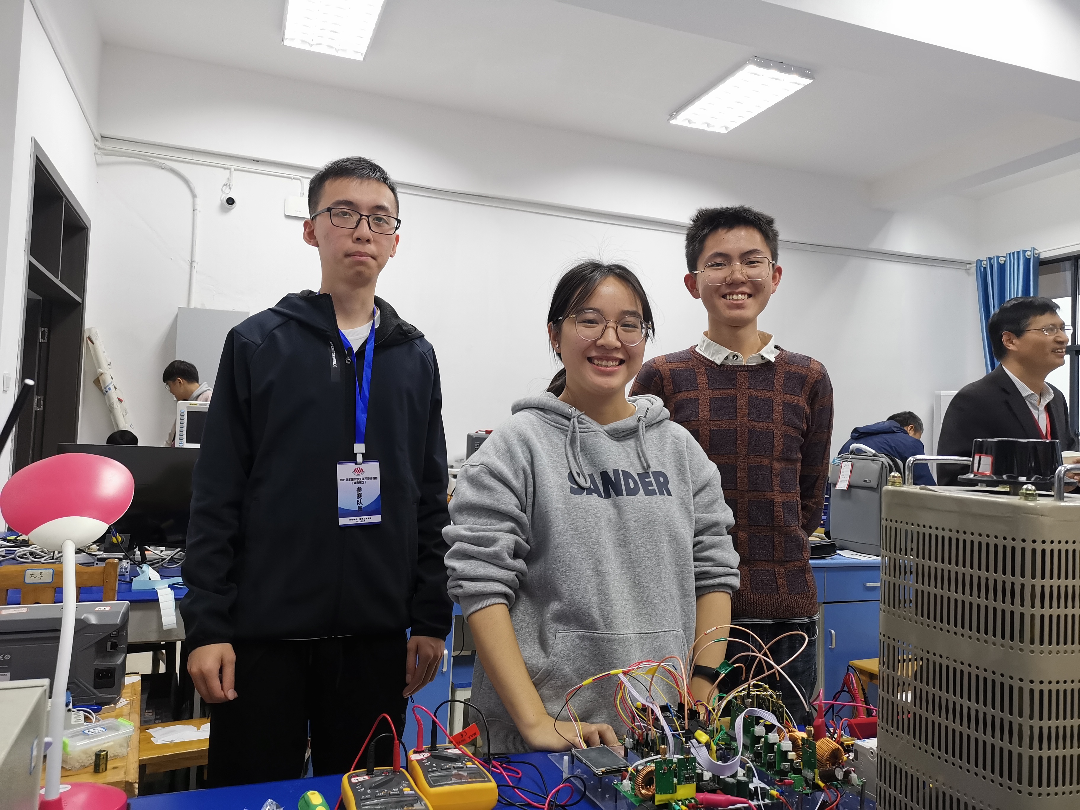 “今年的电子设计竞赛一波三折,我们前期采用创新性的培训方式,合理安排培训项目,同学们暑期激情参与,指导老师一条心。”陈文光教授赛后在朋友圈这样总结这次比赛。学校高度重视此次比赛,教务处及sunbet申搏每年投入较大的培养资源,从学科设置、师资队伍配比、实验设备和环境的提供中优先支持创新教育人才的培养,讲究”研学结合”,“以赛促学”,指导、鼓励和支持学生积极参赛,并聘请了知名专家、优秀校友开展高规格的技术讲座和实践创新培训,提升了学生的学以致用能力、设计研发能力、创新和团队协作意识等。