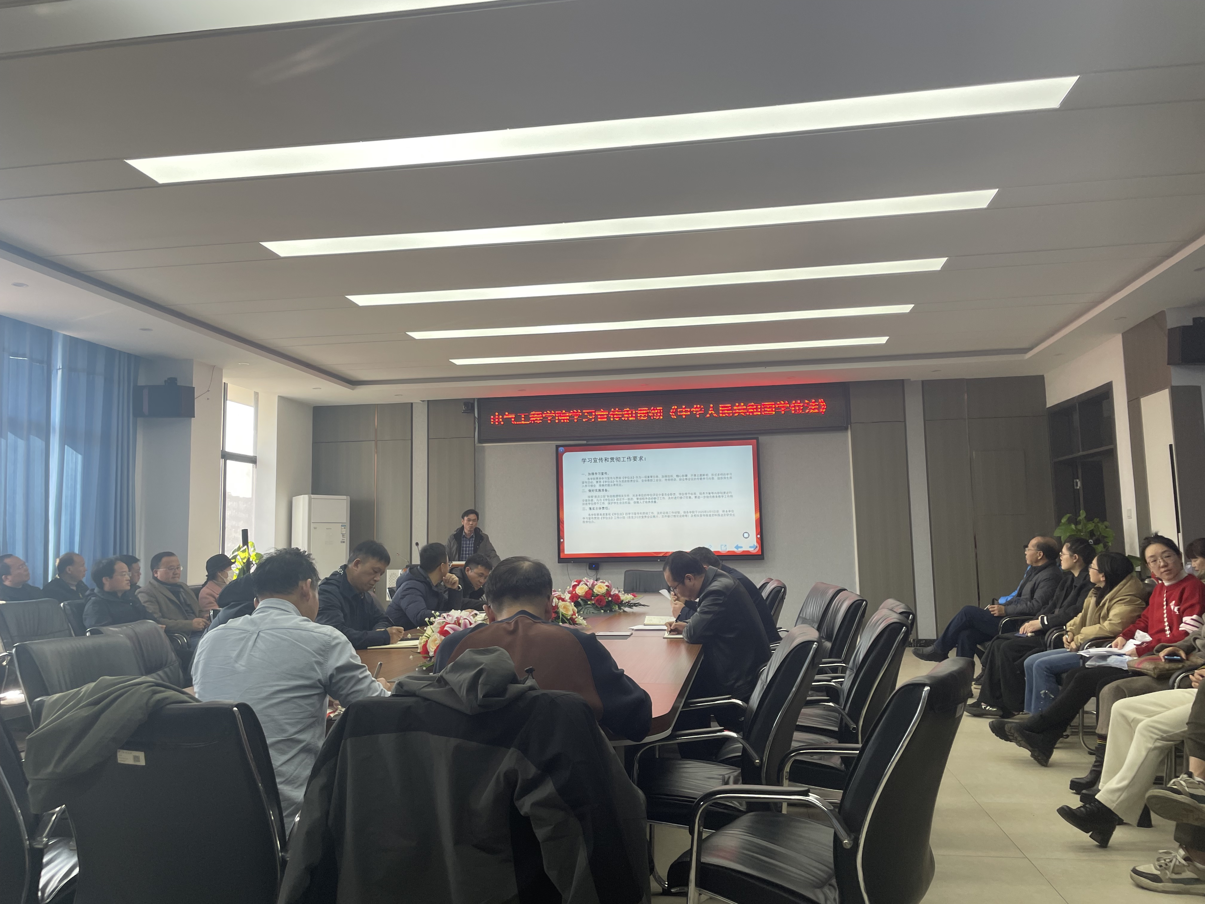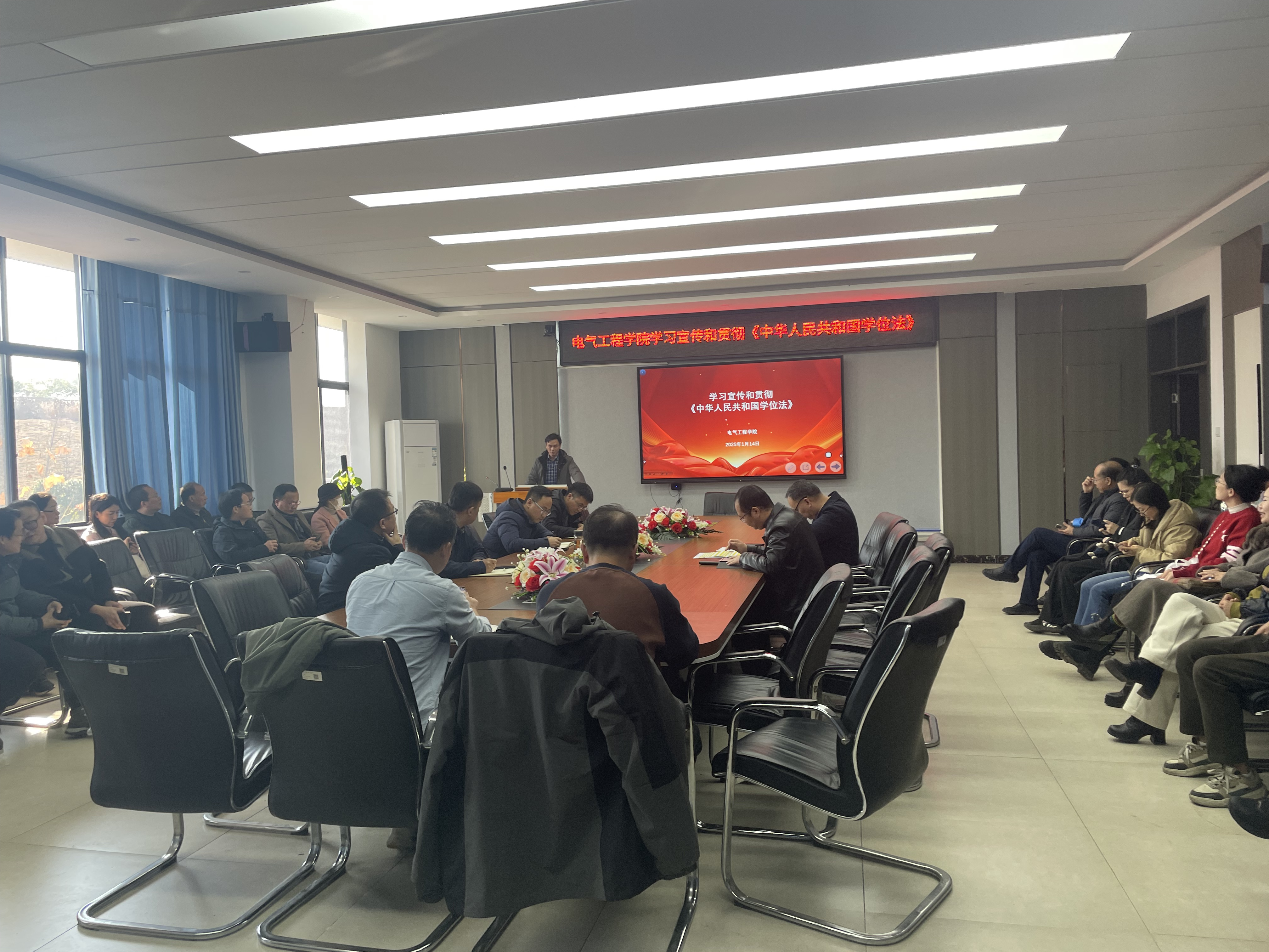 会议最后,单院长强调,学院全体师生应以此次学习为契机,强化过程管理,严格把控学位论文开题、中期检查、答辩等环节,确保学位授予质量。持续推动《学位法》的贯彻落实,不断提升学位授予工作的规范化、科学化水平,为培养高素质人才提供坚实保障。