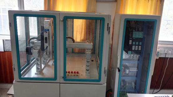 本实验装置的控制核心是SIMOTION D435多轴运动控制器(最高可扩展至128轴),选用ET-200M进行I/O接口扩展,机械手选用气动平行气爪,同时配有小型静音气泵,气爪上安装激光传感器和8色颜色传感器。三轴机械结构形式采用龙门式、伺服电机驱动滚珠丝杆和或伺服电机驱动滚珠丝杆与同步齿形带相结合的结构形式,实现机械手三个方向上的运动。本实验装置可以满足不同层次的运动控制教学和训练要求,与以往运动控制教学装置不同的是本套装置提供了实际生产中广泛应用的龙门式机械平台,这一负载形式具有结构简单、直观、动作灵活,便于学生理解运动控制系统的工作原理,便于学生动手自己编程来规划自己的实验等一系列优点,更重要的是后期可以利用平台上预留的安装孔,结合不同的需求通过增减模块组件,实现低成本、快速的二次开发,为学生提供一个实用的创新平台。