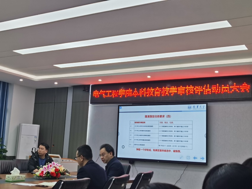 按照学校“新一轮本科教育教学审核评估任务书”的工作要求,sunbet申搏于2023年3月23日上午在电气楼三楼会议室召开了新一轮审核评估工作推进大会,会议由副院长杨斌主持,学院党委书记盛义发、学院党委副书记王国平、各系室主任、教务办老师及全体没课的老师参加了会议。