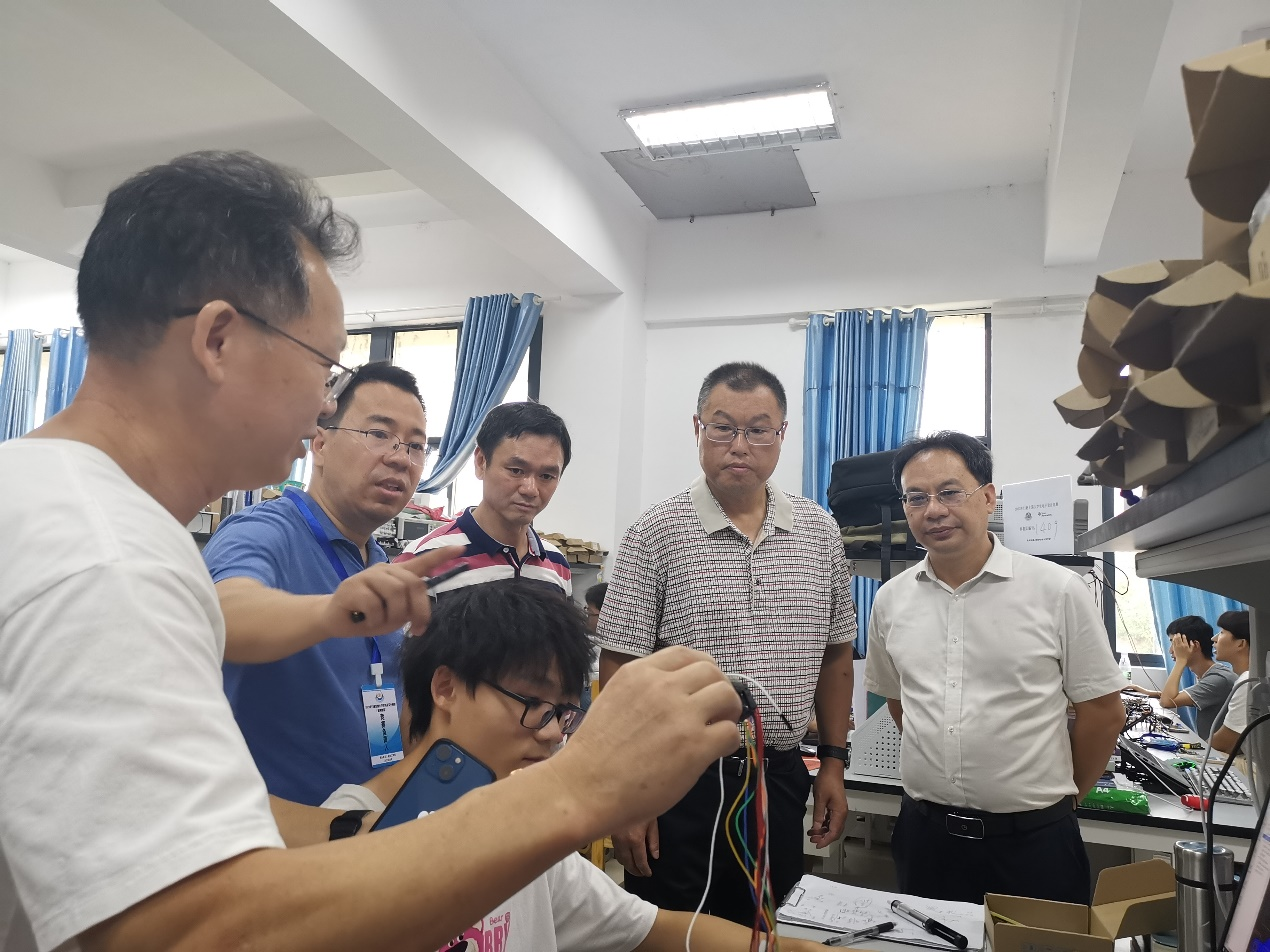 8月1日下午,在2023年TI杯全国大学生电子设计大赛即将开赛之际,南华大学副校长姜志胜、教务部副部长蒲成志、李蒲姣科长等一行莅临我院慰问指导工作,sunbet申搏党委书记盛义发、院长单健,副院长杨斌,指导老师陈文光、董招辉等陪同。大赛技术负责人陈文光教授详细介绍了电子设计竞赛学生和指导老师的准备、动员、进展等情况。姜志胜副校长详细询问了学院参加全国大学生电子设计大赛的筹备和组织工作,以及竞赛规则、难度、暑期培训、备赛准备、生活,竞赛期间的水电网络保障等各种情况,并与备赛学生们面对面地进行深入的亲切交流,询问学生备赛准备情况、生活情况,并强调了学生比赛期间的饮食起居、安全卫生等事项的重要性。