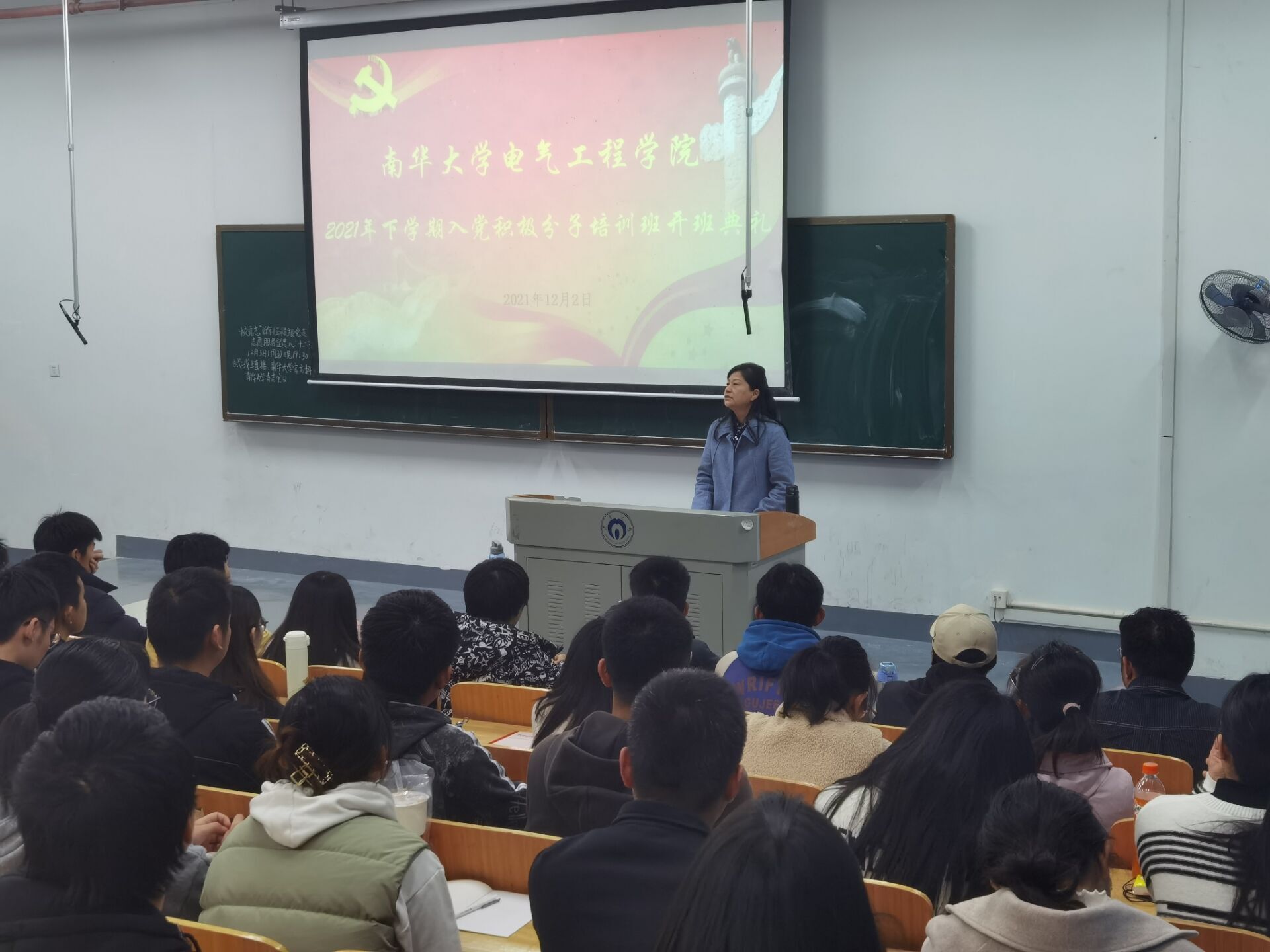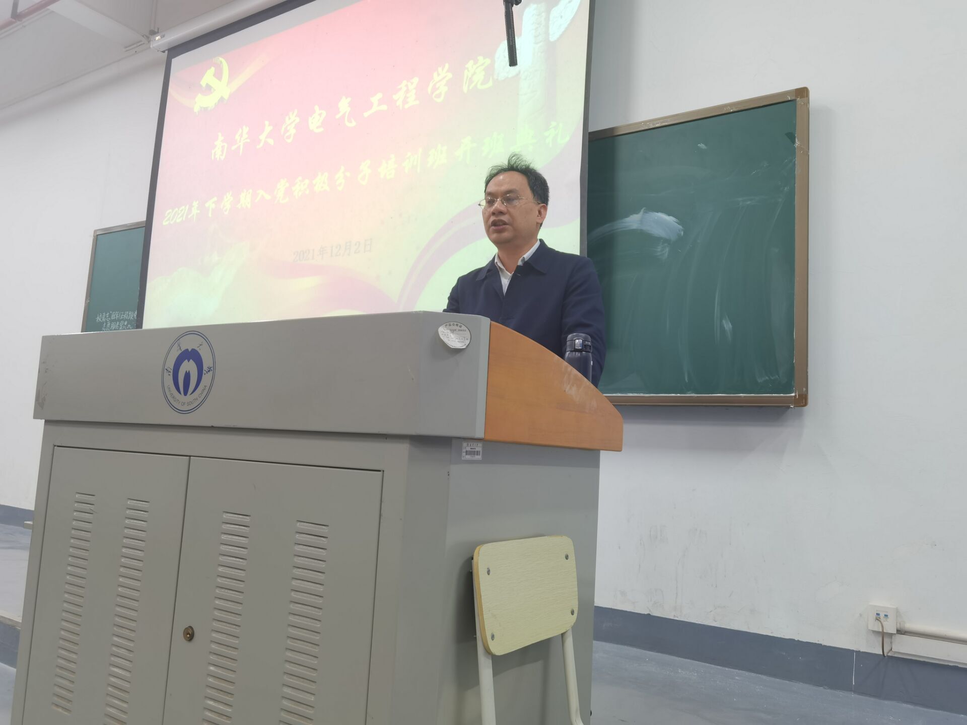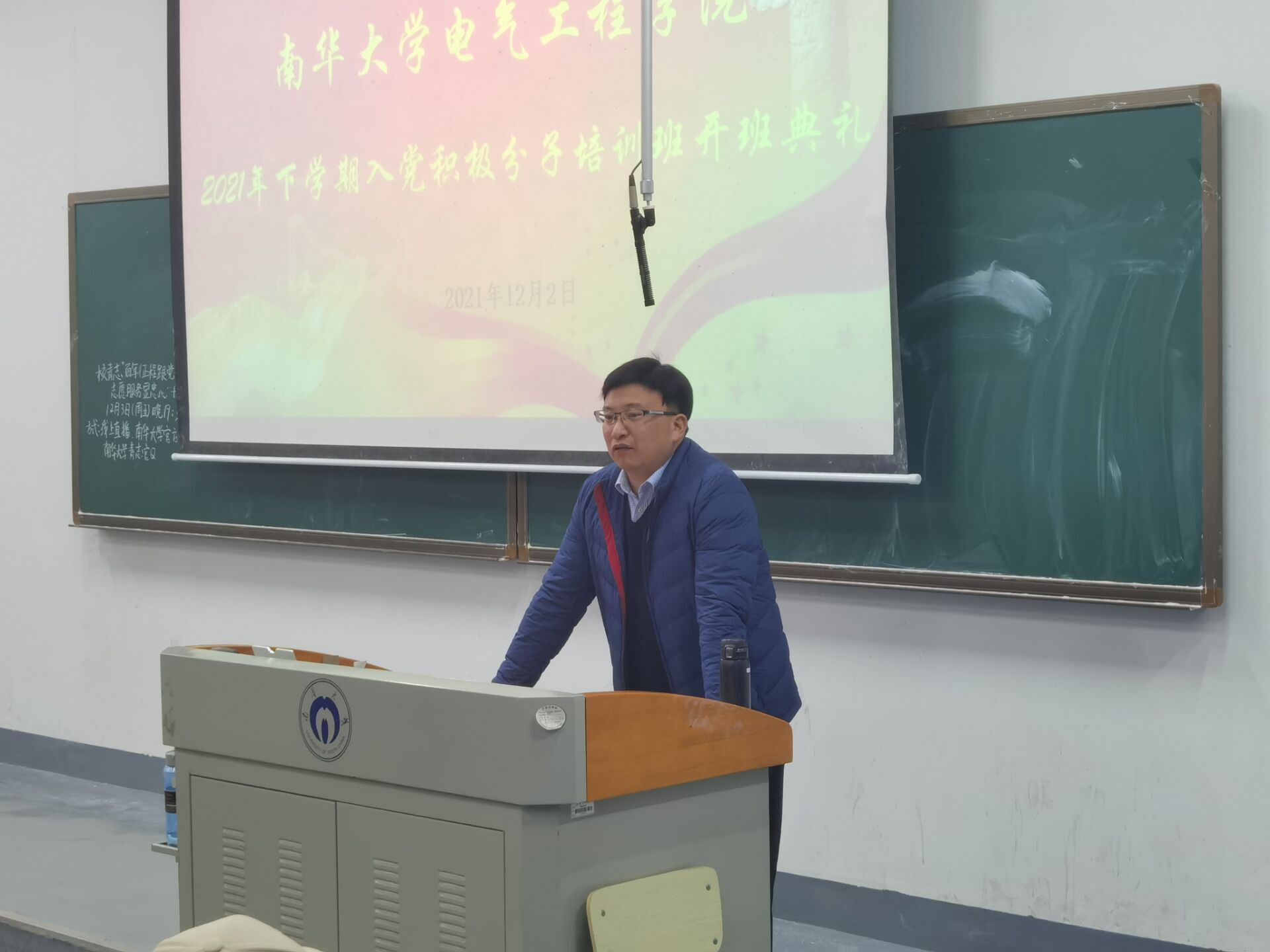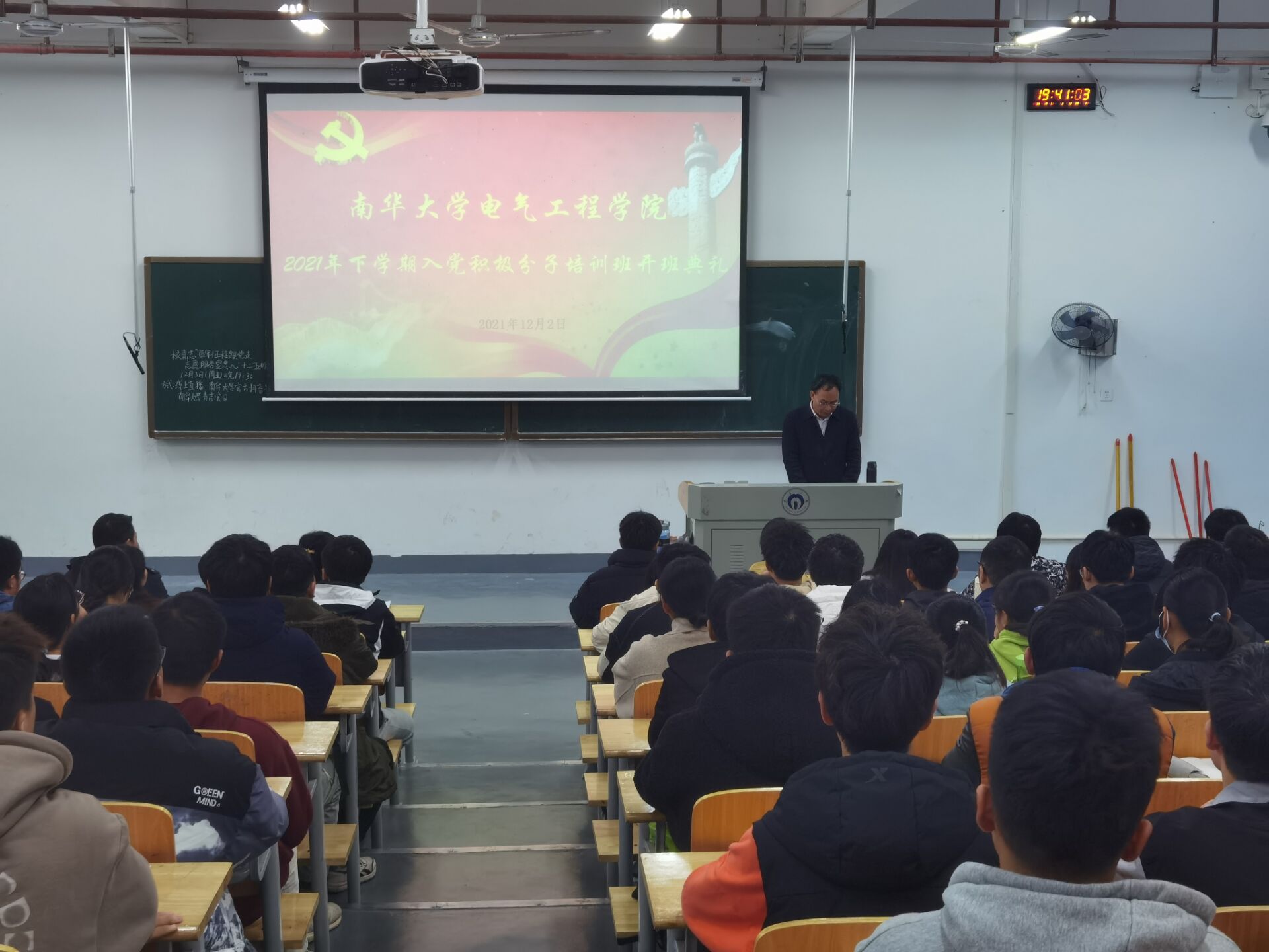 为了更好的贯彻落实《中国共产党章程》,落实好党员发展培训工作;根据学校党委要求和学院党总支部部署安排,研究决定,特于2021年12月2日19:30在雨母楼101教室召开入党积极分子培训班开班典礼,典礼由班主任管龙陵老师主持。本次培训班开班典礼出席人员有学院党委书记、院党校校长盛义发老师,院党委副书记、院党校副校长秦洁老师,学生第二党支部代理书记徐子涵老师,学生第三党支部书记周忠禄老师,学生第四党支部书记王博老师,院团委书记袁梦甜老师,以及全体211名学员同学们。