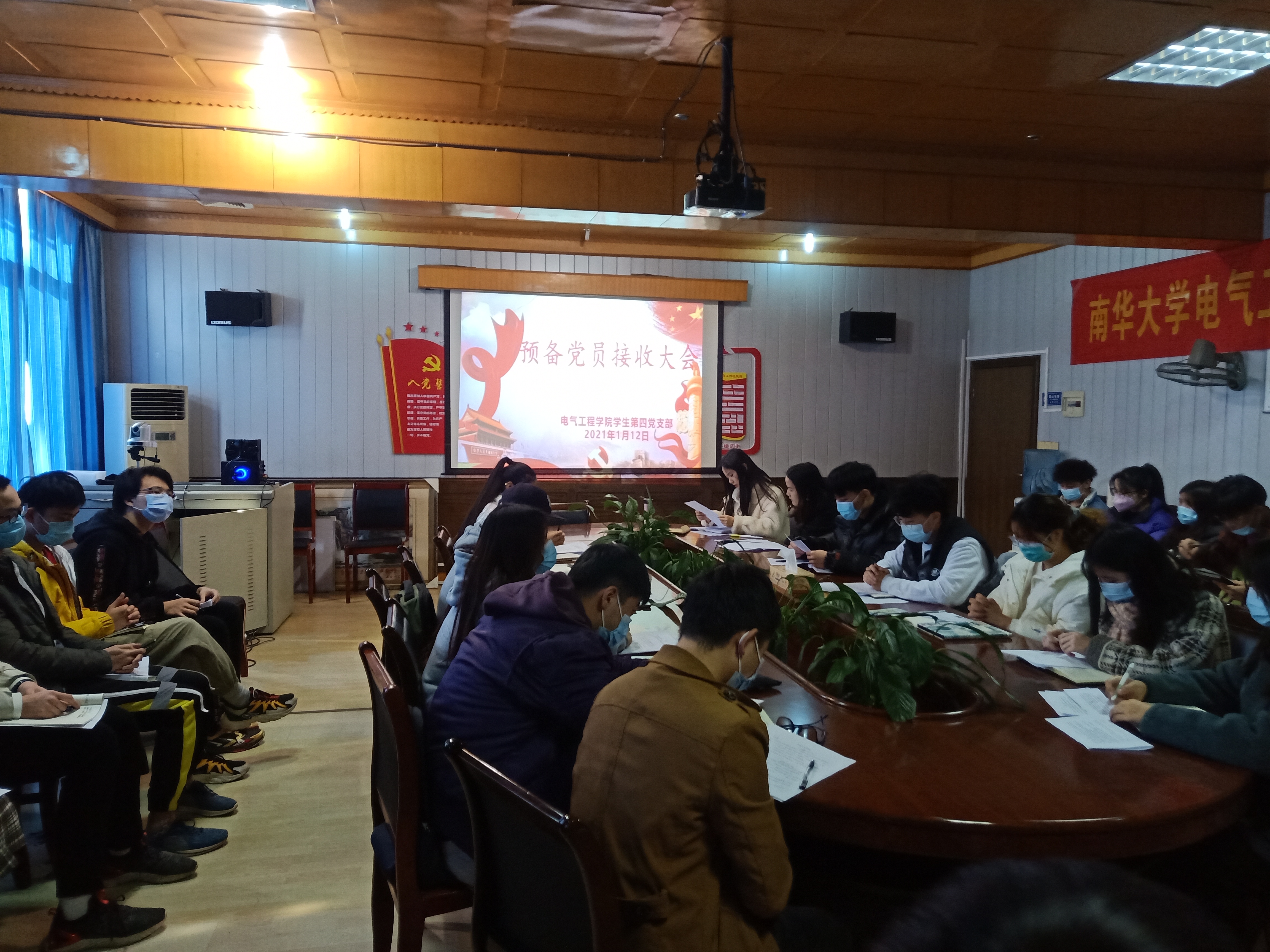 2021年1月12日下午一点,sunbet申搏学生第四党支部在电气楼402召开党员大会。本次大会应到正式党员14名、预备党员16名,实到正式党员12名、预备党员15名、请假3名、列席人员2名。冯国涛老师和周珍珍老师作为列席人员出席了本次会议。会议由党支部副书记龙杨帆同志主持。