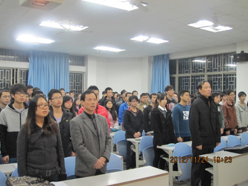 11月21日晚7:30我院分党校2012年下学期入党积极分子培训班结业典礼于九教102隆重举行。我院党委书记单长虹、学生党员第二支部书记李云忠、培训班班主任管龙陵、团委副书记鹿馨芳以及117名入党积极分子参加了此次典礼。