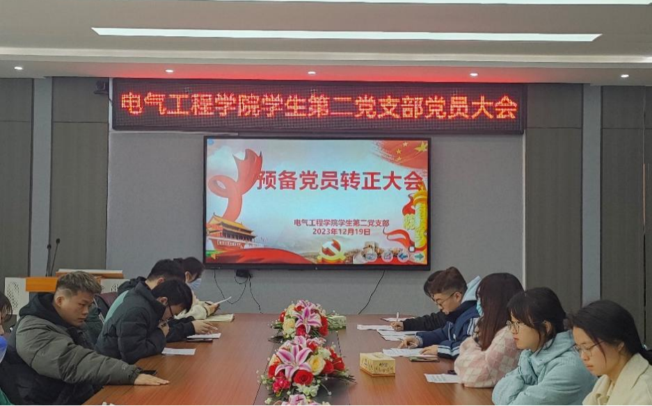 2023年12月19日,sunbet申搏学生第二党支部于电气楼B301会议室召开预备党员转正大会。支部书记周珍珍老师、全体学生正式党员和预备党员参会,会议由支部副书记徐可馨主持。