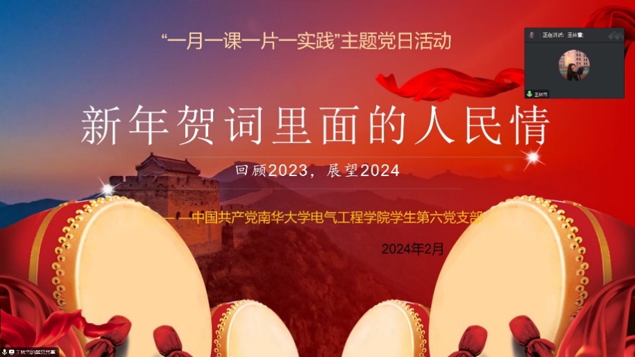2024年2月,sunbet申搏,sunbet申搏官网学生第六党支部在线上开展二月份的“一课一片一实践”活动,会议由王林雪同志主持。