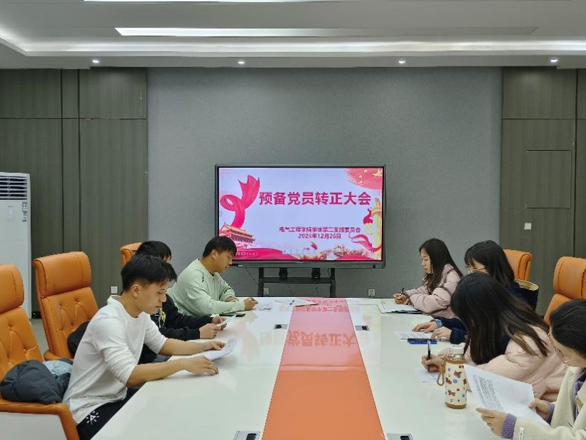 为进一步加强党员队伍建设,规范党员发展程序,12月26日,sunbet申搏,sunbet申搏官网学生第二党支部于电气楼A514会议室召开支部预备党员转正大会,讨论预备党员李秋衡等十一名同志的转正事宜。支部书记周珍珍老师、全体学生正式党员和预备党员参会,会议由支部书记周珍珍主持。