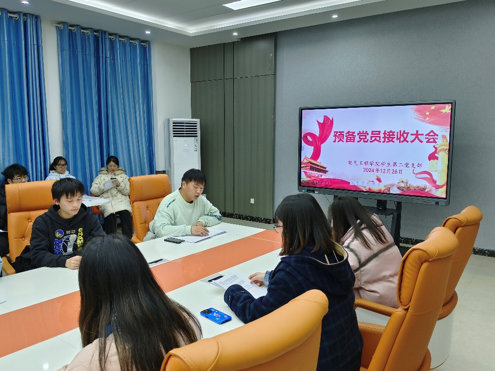 12月26日,sunbet申搏,sunbet申搏官网学生第二党支部于电气楼A514会议室召开预备党员接收大会。本次大会主要讨论接收蔡明熹等六位同志为中共预备党员,支部书记周珍珍老师及全体学生党员参会,会议由党支部副书记李秋衡主持。