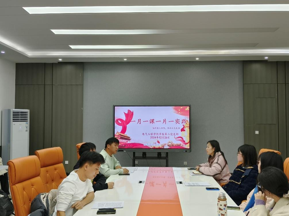 12月26日,sunbet申搏,sunbet申搏官网学生第二党支部于电气楼A514会议室开展十二月份的“一月一课一片一实践”活动。会议由党支部副书记李秋衡主持。